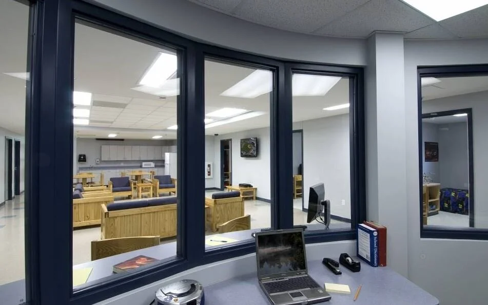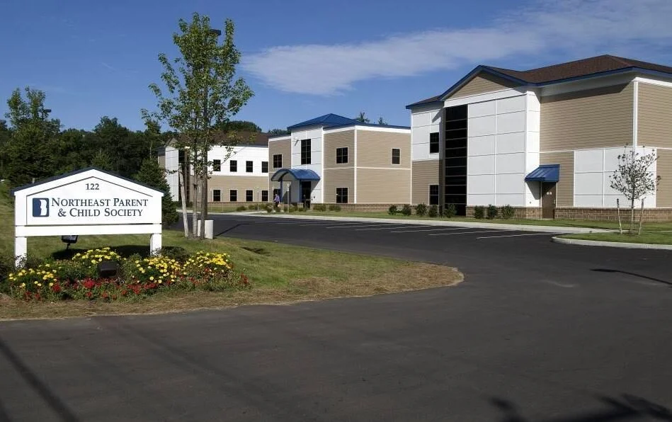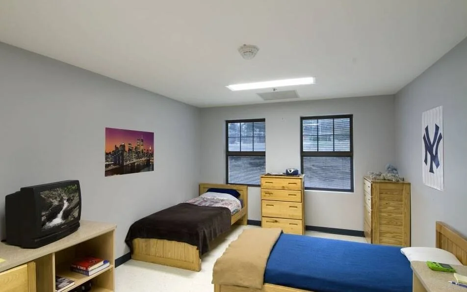 The new building for Northeast Parent and Child Society creates a modern, energy efficient and secure environment for the students, residents and staff. The building features one security controlled central entry, (2) two story dormitory areas each with 4 individual “pods”, offices for health, counselors and administration, a common dining room, activity room and a full gymnasium. Each dormitory “pod” features (8) sleeping rooms, (2) individual bathrooms, a common TV/recreation and computer area, dining area with kitchenette, and an office for controlled supervision. The gymnasium is high school regulation size with the ability to be divided into two smaller gyms each with half basketball courts.