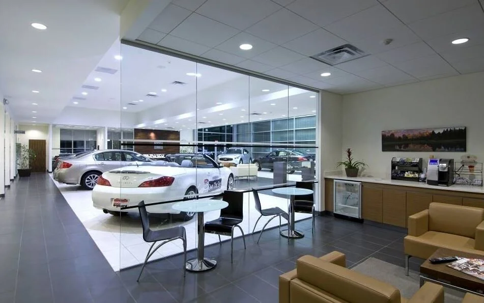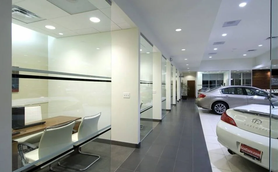 Re4orm Architecture has worked in conjunction with BBL Construction to update an existing 26,000 square foot car dealership into a new upgraded facility meeting Infiniti’s national design specifications. The design includes the demolition of the existing gallery and many of the existing sales areas to create a larger showroom and an optimal layout for sales. The new gallery features a glass curtain wall system used as a symbol of the Infiniti brand. In addition, more office space was added while all vehicle service areas and back-of-the-house offices have been upgraded with contemporary finishes.